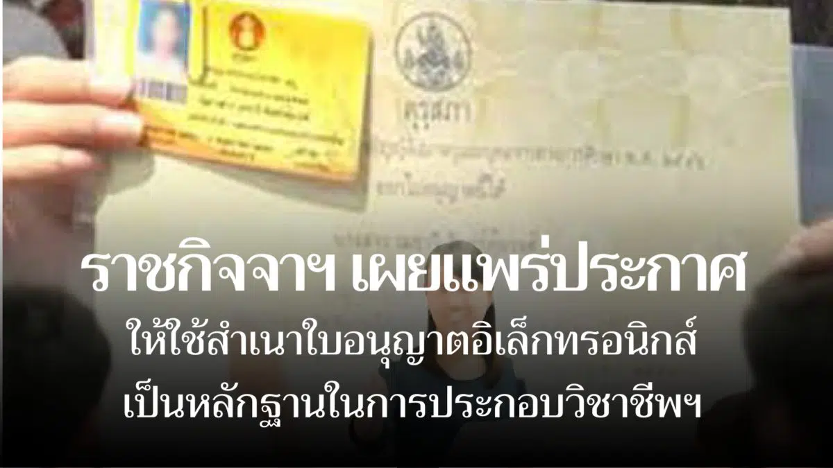 ราชกิจจานุเบกษาเผยแพร่ประกาศให้ใช้สำเนา ใบอนุญาต อิเล็กทรอนิกส์ เป็นหลักฐานในการประกอบวิชาชีพทางการศึกษา