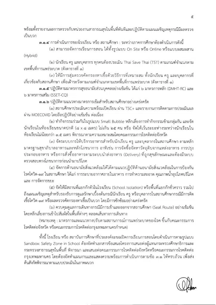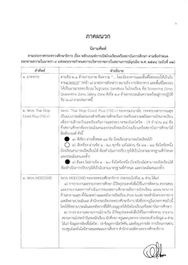 อาศัยอํานาจตามความในข้อ ๔ (๑) ของข้อกําหนดออกตามความในมาตรา ๙ แห่งพระราชกําหนด การบริหารราชการในสถานการณ์ฉุกเฉิน พ.ศ. ๒๕๕๘ (ฉบับที่ ๓๔) จึงยกเลิกประกาศกระทรวงศึกษาธิการ เรื่อง หลักเกณฑ์การเปิดโรงเรียนหรือสถาบันการศึกษาตามข้อกําหนดออกตามความในมาตรา ๙ แห่งพระราชกําหนด การบริหารราชการในสถานการณ์ฉุกเฉิน พ.ศ. ๒๕๕๘ (ฉบับที่ ๓๒) ลงวันที่ ๒๐ กันยายน ๒๕๖๔ และออกหลักเกณฑ์ ไว้ดังนี้