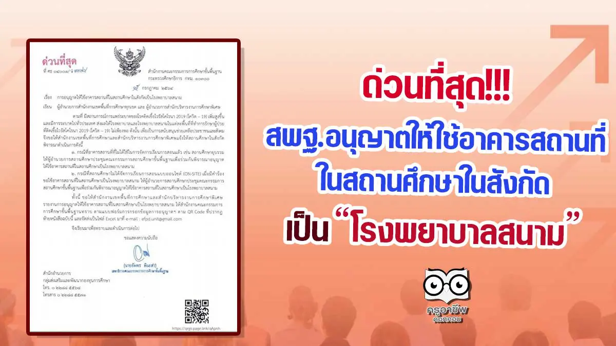 ด่วนที่สุด!! สพฐ.อนุญาตให้ใช้อาคารสถานที่ในสถานศึกษาในสังกัด เป็นโรงพยาบาลสนาม