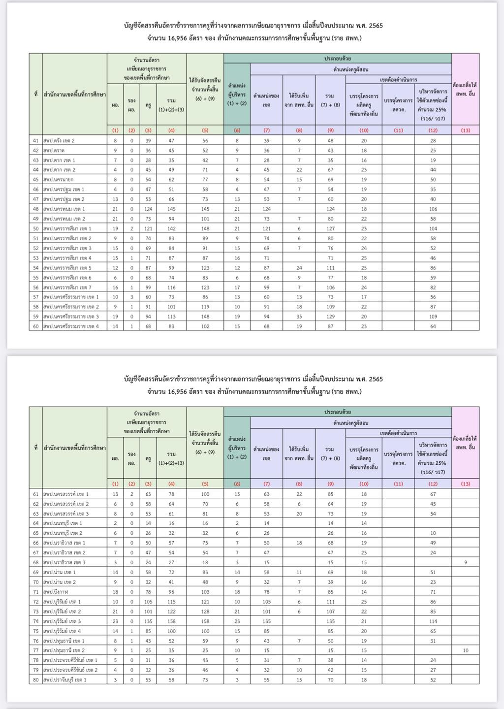 เช็คด่วน!! สพฐ.จัดสรรอัตราว่างจากผลการเกษียณอายุราชการ จำนวน 16,956 อัตรา เมื่อสิ้นปีงบประมาณ พ.ศ. 2565 อัตราว่างเกษียณอายุราชการ 2566 อัตรา ว่าง ครูผู้ช่วย 2566 แต่ละ จังหวัด