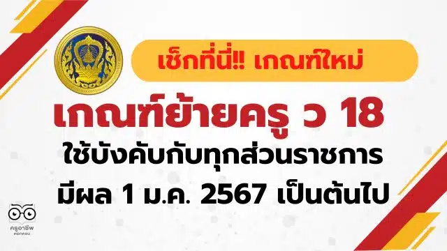 เช็กที่นี่ !! เกณฑ์ย้ายครู ว 18 เกณฑ์ใหม่ ใช้บังคับกับทุกส่วนราชการ ตั้งแต่ วันที่ 1 ม.ค. 2567 เป็นต้นไป