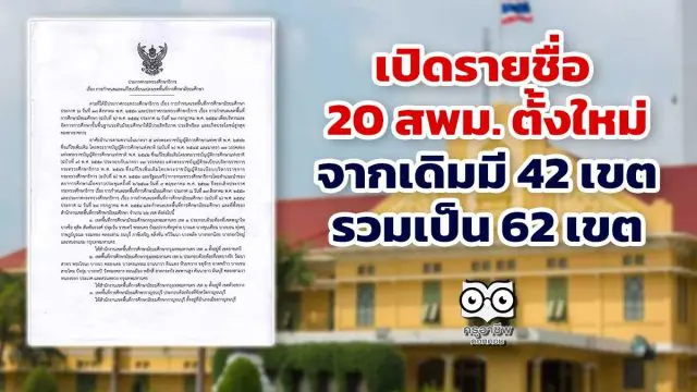 เปิดรายชื่อ 20 สพม. ตั้งใหม่ จากเดิมมี 42 เขต รวมเป็น 62 เขต ผู้สื่อข่าวรายงานว่า ตามที่นายณัฏฐพล ทีปสุวรรณ รมว.ศึกษาธิการ ได้ระบุว่าได้มีการลงนามประกาศกระทรวงศึกษาธิการ (ศธ.) เรื่องการกำหนดและแก้ไขเปลี่ยนแปลงเขตพื้นที่การศึกษามัธยมศึกษา ซึ่งมีคำสั่งเพิ่มสำนักงานเขตพื้นที่การศึกษามัธยมศึกษา (สพม.) อีก 20 เขต จากเดิมมี สพม.อยู่ทั้งหมด 42 เขต ทำให้มี สพม.เพิ่มรวมเป็น 62 เขต ดังนี้