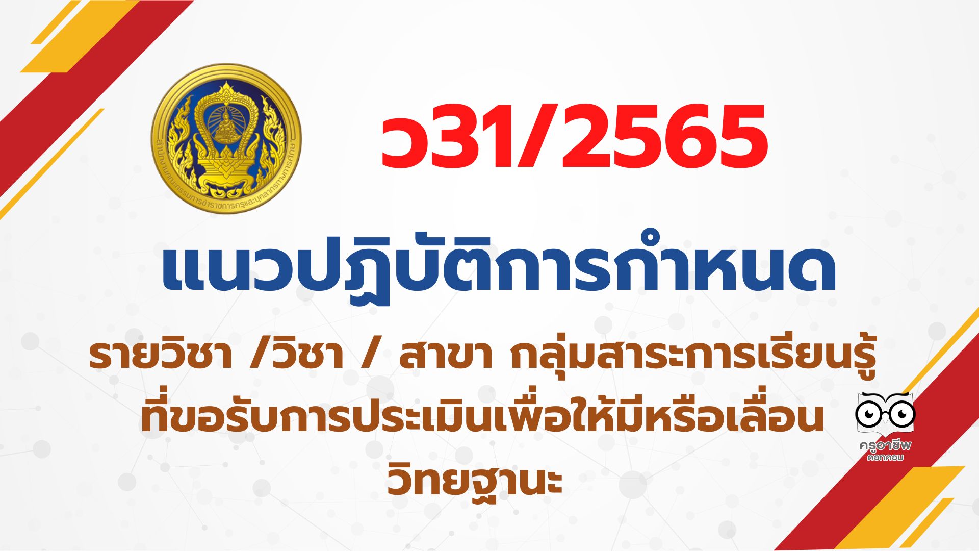 ว31/2565 แนวปฏิบัติการกำหนดรายวิชา วิชา สาขา กลุ่มสาระการเรียนรู้ ที่ขอรับการประเมินเพื่อให้มีหรือเลื่อนวิทยฐานะ