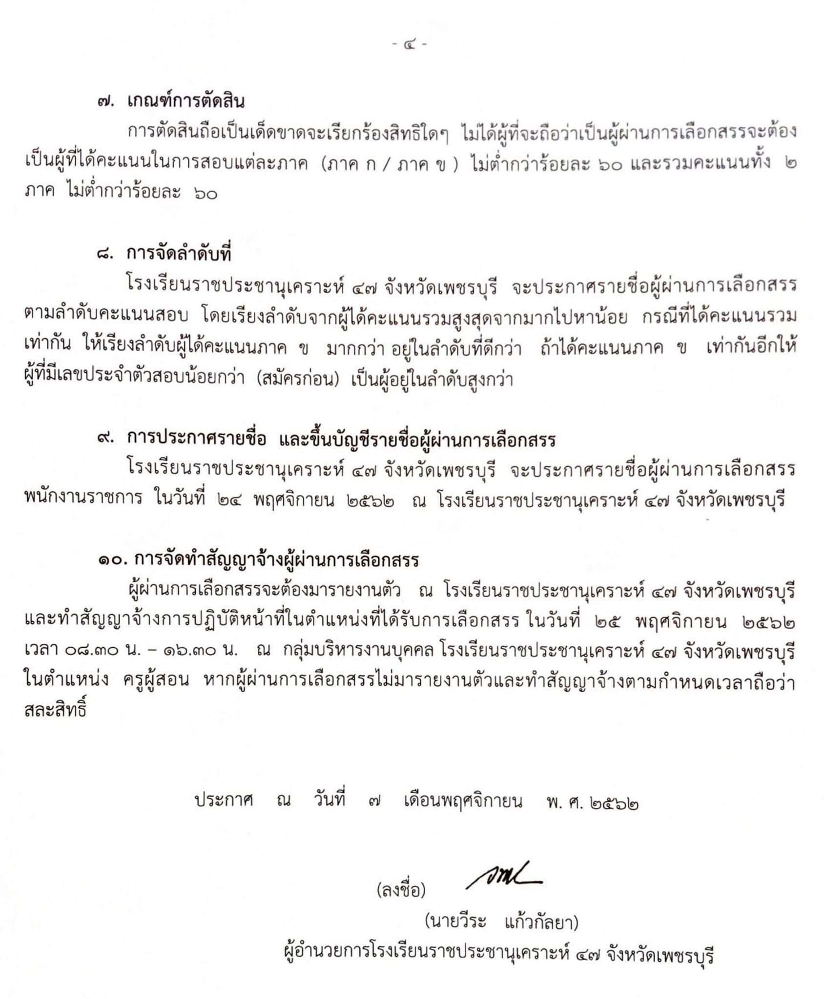 4) มีความสามารถด้านคณิตศาสตร์ การรับสมัคร ให้ผู้ประสงค์จะสมัคร ขอและยื่นใบสมัครด้วยตนเองได้ที่ โรงเรียนราชประชานุเคราะห์ 47 จังหวัดเพชรบุรี ตั้งแต่วันที่ 7-21 พฤศจิกายน 2562 (ไม่เว้นวันหยุดราชการ)