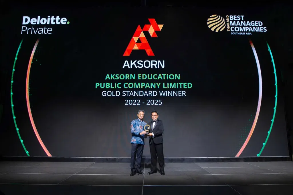 เมื่อวันที่ 19 พฤศจิกายน 2568 บริษัท อักษร เอ็ดดูเคชั่น จำกัด (มหาชน) ผู้นำนวัตกรรมด้านสื่อเพื่อ การศึกษาของไทย ได้รับเชิญให้ เข้าร่วมงาน “2025 Southeast Asia Best Managed Companies Regional Awards Ceremony” ซึ่งจัดขึ้น ณ กรุงกัวลาลัมเปอร์ ประเทศมาเลเซีย เพื่อประกาศความ ภาคภูมิใจอีกครั้ง หลังได้รับการยกย่องจาก Deloitte Private ให้เป็นหนึ่งในองค์กรที่มี การบริหารจัดการยอดเยี่ยมที่สุดของประเทศไทย ซึ่งได้รับรางวัล Thailand’s Best Managed Companies 2025 ต่อเนื่องเป็นปีที่ 4 และก้าวสู่สถานะสูงสุด “Gold Standard” สะท้อนถึงความสามารถในการจัดการองค์กรที่ดำเนินการเกี่ยวกับการศึกษาในระดับนานาชาติ