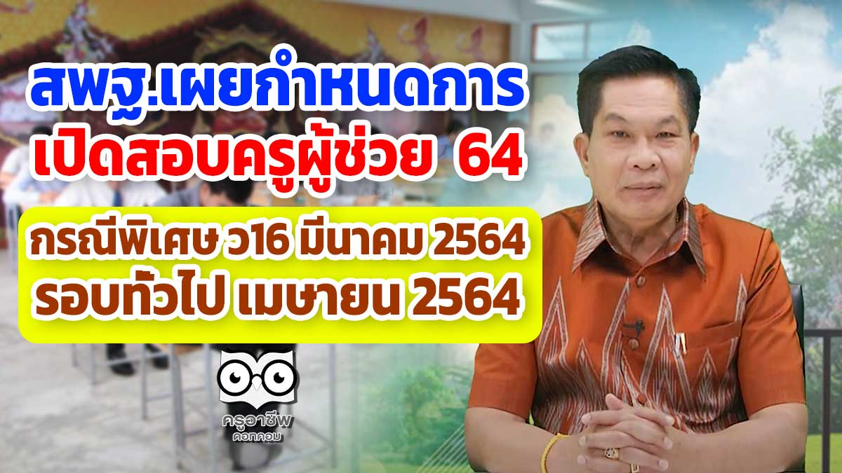 สพฐ.เผยกำหนดการ เปิดสอบครูผู้ช่วย 64 กรณีพิเศษ ว16 มีนาคม 2564 รอบทั่วไป เมษายน 2564