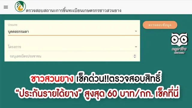 ชาวสวนยาง เช็คด่วน!! ตรวจสอบสิทธิ์ “ประกันรายได้ยาง” สูงสุด 60 บาท/กก. เช็คที่นี่ จำนวนเกษตรกร จำนวน 1.8 ล้านราย