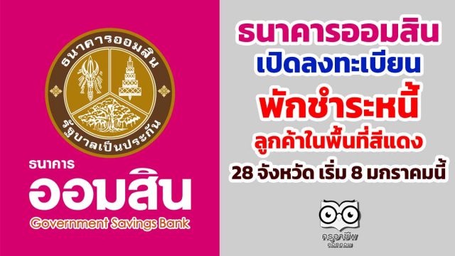 ธนาคารออมสิน นำร่อง เปิดลงทะเบียน พักชำระหนี้ ลูกค้าในพื้นที่สีแดง 28 จังหวัด เริ่ม 8 มกราคมนี้ ธนาคารออมสิน ออกมาตรการเร่งด่วน ช่วยเหลือลูกค้าในพื้นที่สีแดง 28 จังหวัด บรรเทาความเดือดร้อนจากสถานการณ์ COVID-19 ระบาดระลอกใหม่