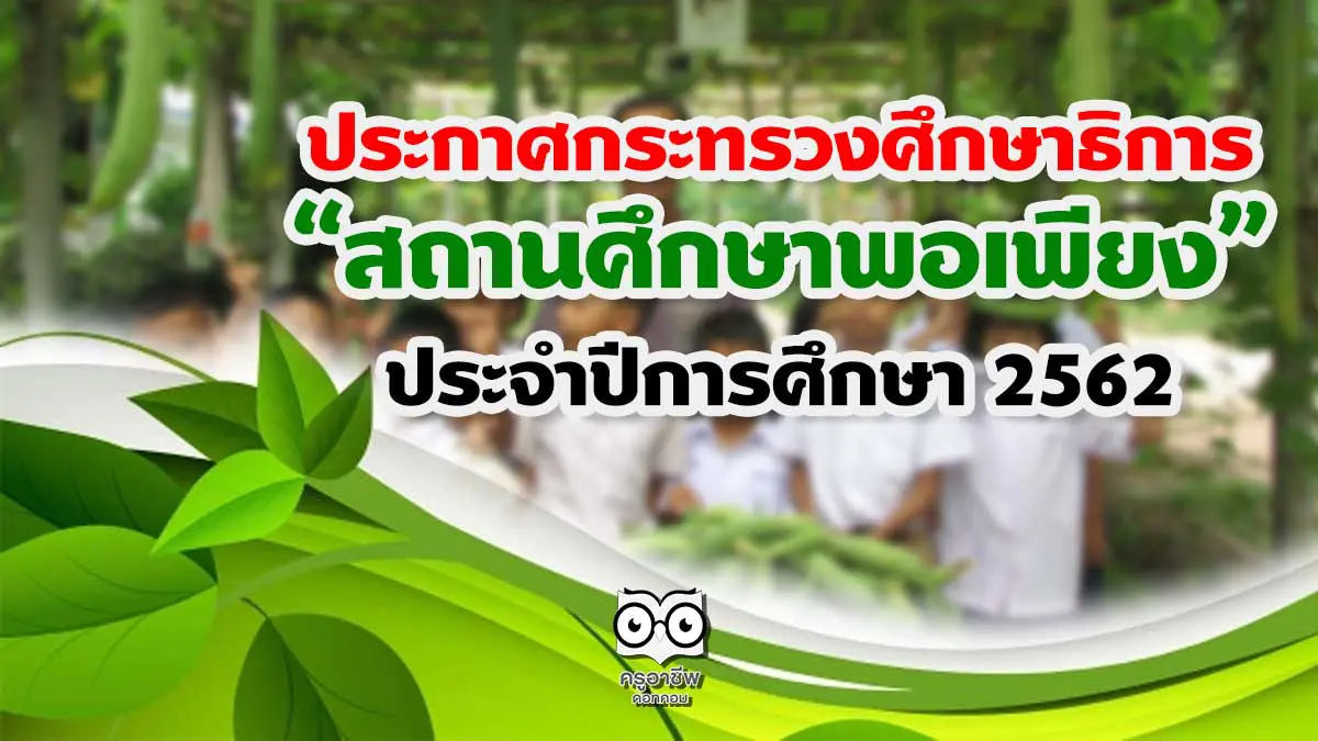 ประกาศกระทรวงศึกษาธิการ “สถานศึกษาพอเพียง” ประจำปีการศึกษา 2562 ประกาศกระทรวงศึกษาธิการ เรื่อง สถานศึกษาแบบอย่างการจัดกิจกรรมการเรียนรู้และการบริหารจัดการตามหลักปรัชญาของศรษฐกิจพอเพียง “สถานศึกษาพอเพียง” ประจำปีการศึกษา 2562