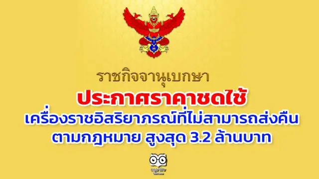 ราชกิจจาฯ ประกาศราคาชดใช้เครื่องราชอิสริยาภรณ์ที่ไม่สามารถส่งคืนตามกฎหมาย สูงสุด 3.2 ล้านบาท