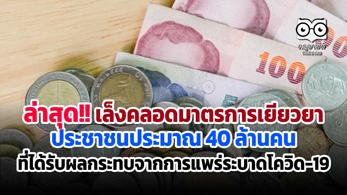 ล่าสุด!! เล็งคลอดมาตรการเยียวยาประชาชนประมาณ 40 ล้านคน ที่ได้รับผลกระทบจากการแพร่ระบาดโควิด-19