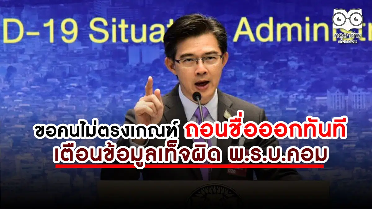 โฆษก ศบค. ขอบคุณคนแสดงความรับผิดชอบ หลังยกเลิกลงทะเบียนรับเงิน 5,000 บาท ไปกว่า 3 แสนคน ขอคนไม่ตรงเกณฑ์ถอนชื่อออกทันที เตือน การให้ข้อมูลเท็จมีความผิดตาม พ.ร.บ.คอมพิวเตอร์