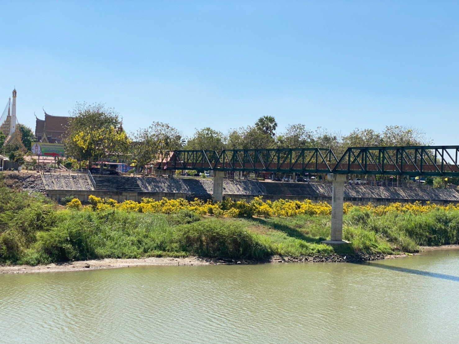 ด้านหลังวัดจะมีสถานที่ให้อาหารปลา และจะเห็นสะพานเหล็กข้ามแม่น้ำป่าสัก และเขื่อนพระราม6เขื่อนแห่งแรกของไทย