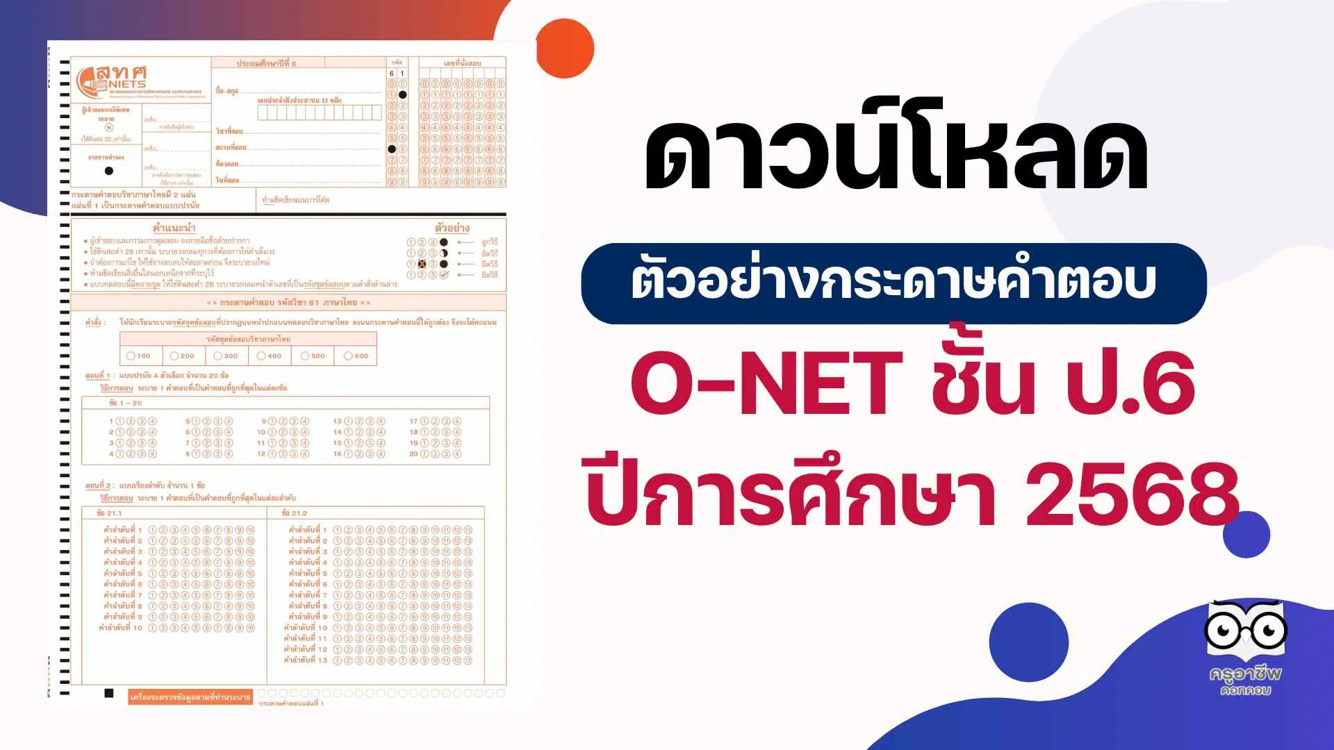 ดาวน์โหลด ตัวอย่างกระดาษคำตอบ O-NET ชั้น ป.6 ปีการศึกษา 2568 (4 วิชา ภาษาไทย ภาษาอังกฤษ คณิตศาสตร์ และวิทยาศาสตร์)