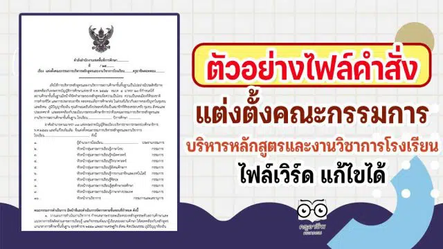 ตัวอย่างไฟล์คำสั่งแต่งตั้งคณะกรรมการบริหารหลักสูตรและงานวิชาการโรงเรียน ไฟล์เวิร์ด แก้ไขได้