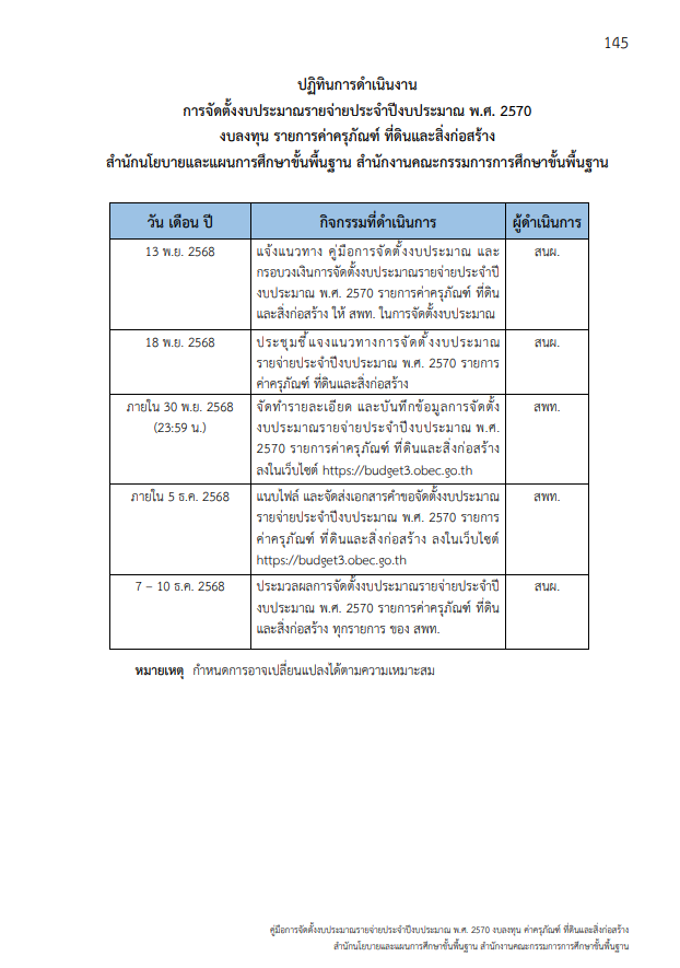 ดาวน์โหลด คู่มือการจัดตั้งงบประมาณรายจ่ายประจำปีงบประมาณ 2570 งบลงทุน ค่าครุภัณฑ์ ที่ดิน และสิ่งก่อสร้าง สำนักงานคณะกรรมการการศึกษาขั้นพื้นฐาน