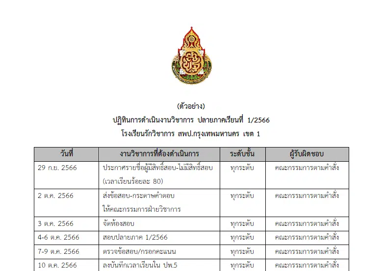 ดาวน์โหลดฟรี ตัวอย่างไฟล์ ปฏิทินงานวิชาการปลายภาคเรียนที่ 1 ปีการศึกษา 2566 ไฟล์เวิร์ด Doc โดยเพจ วิชาการ