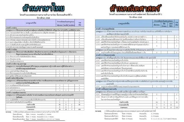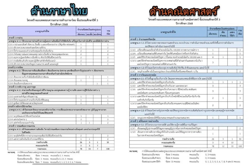 โครงสร้างแบบทดสอบความสามารถด้านภาษาไทย ชั้นประถมศึกษาปีที่ 3 ปีการศึกษา 2568