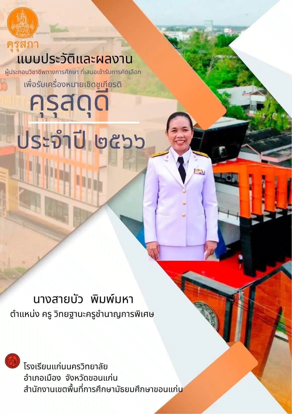 ครูสายบัว พิมพ์มหา ครูชำนาญการพิเศษ โรงเรียนแก่นนครวิทยาลัย สพม.ขอนแก่น