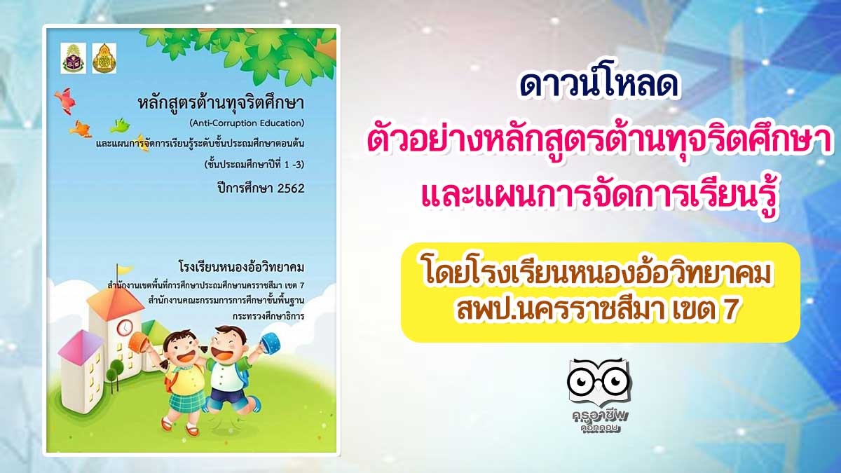 ดาวน์โหลด ตัวอย่างหลักสูตรต้านทุจริตศึกษา และแผนการจัดการเรียนรู้ โดยโรงเรียนหนองอ้อวิทยาคม สพป.นครราชสีมา เขต 7