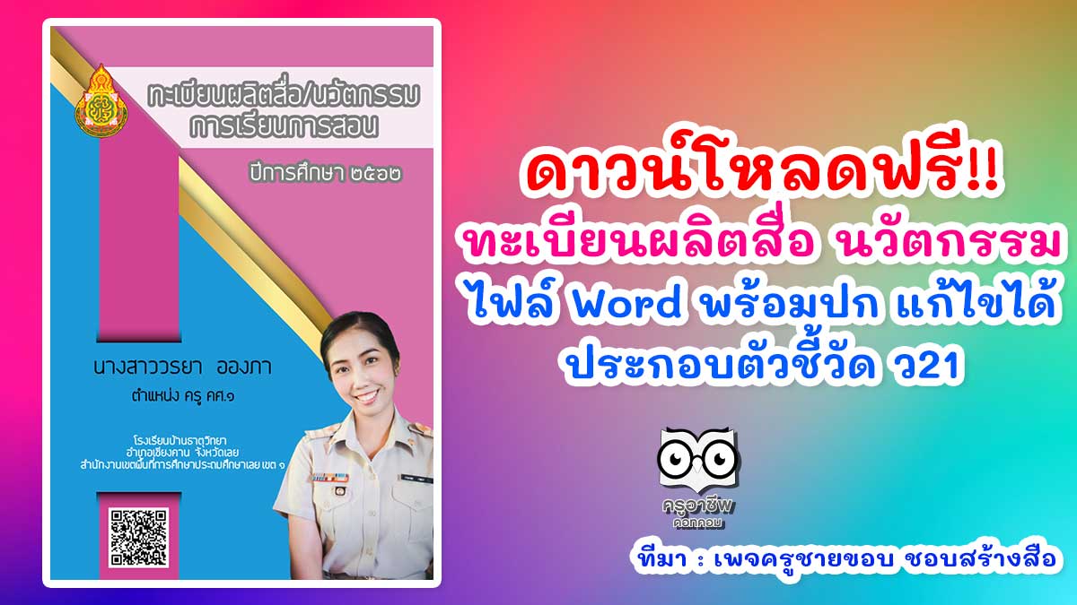 ดาวน์โหลดฟรี!! ทะเบียนผลิตสื่อ นวัตกรรมการเรียนการสอน ไฟล์ Word พร้อมปก แก้ไขได้