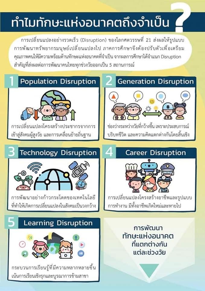 โดย สำนักวิจัยและพัฒนาการศึกษา สำนักงานเลขาธิการสภาการศึกษา กระทรวงศึกษาธิการ เพื่อพัฒนาคุณภาพคนไทยทุกช่วงวัยรองรับการเปลี่ยนแปลงอย่างรวดเร็ว (Disruption) ของโลกศตวรรษที่ 21 เพื่อศึกษา วิเคราะห์ และสังเคราะห์ข้อมูลเกี่ยวกับทักษะ ที่จำเป็น แห่งอนาคต (Future Skill) และจัดทำ แนวทางการส่งเสริมทักษะ ที่จำเป็น แห่งอนาคต (Future Skill) ที่เหมาะสมกับบริบทของคนไทย เพื่อเตรียมการพัฒนาคุณภาพคนไทยทุกช่วงวัย รองรับการเปลี่ยนแปลงอย่างรวดเร็วของโลกในศตวรรษที่ 21 โดยคาดหวังว่าผลการศึกษาในครั้งนี้ จะสามารถเป็นองค์ความรู้ เพื่อใช้ในการศึกษาต่อยอด เกี่ยวกับ การพัฒนาและส่งเสริมทักษะ ที่จำเป็น แห่งอนาคต (Future Skill) ของคนไทยในแต่ละช่วงวัยได้