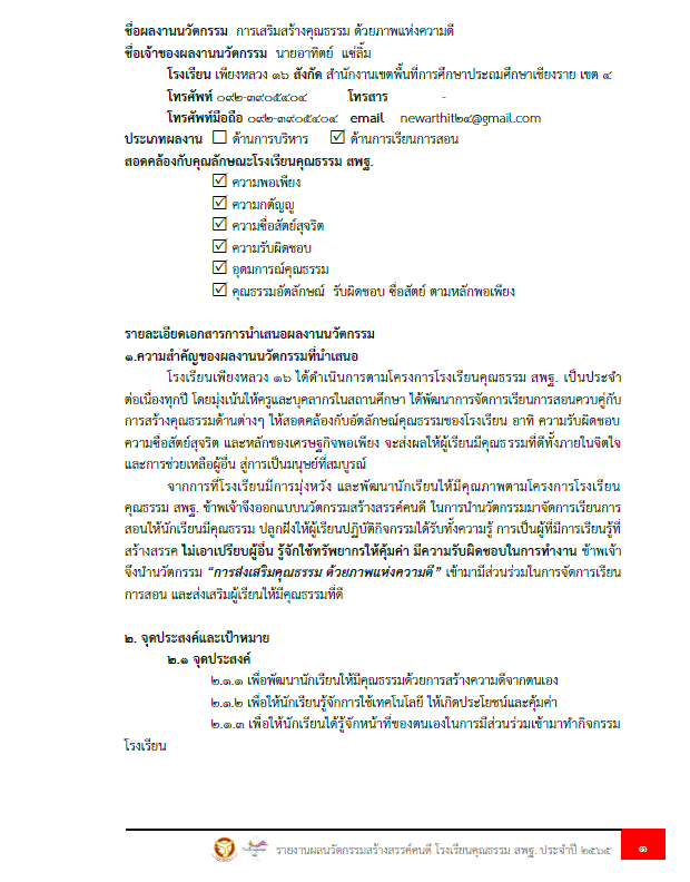 เผยแพร่ นวัตกรรมสร้างสรรค์คนดี ปี2565 ไฟล์เวิร์ด *.doc โรงเรียนคุณธรรม สพฐ. โดยครูอาทิตย์ แซ่ลิ้ม โรงเรียนเพียงหลวง 16