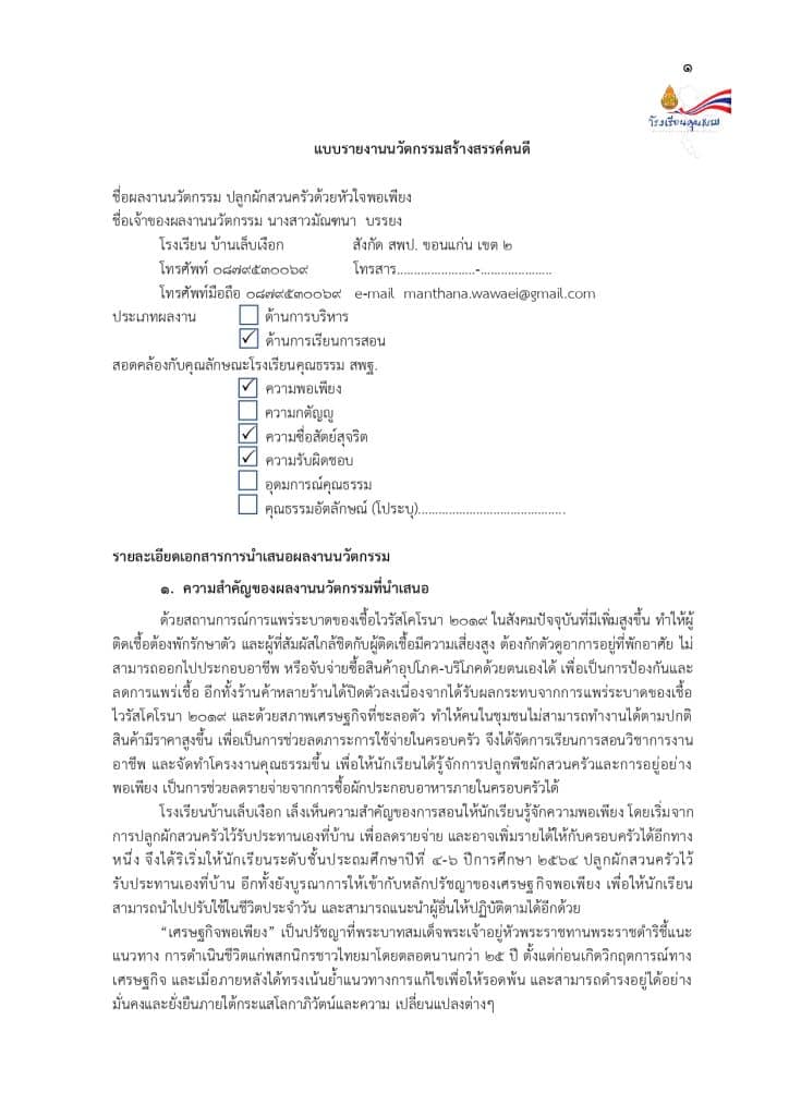 ดาวน์โหลดไฟล์ตัวอย่าง นวัตกรรมสร้างสรรค์คนดี เรื่องปลูกผักสวนครัวด้วยหัวใจพอเพียง โดยนางสาวมัณฑนา บรรยง โรงเรียนบ้านเล็บเงือก สพป.ขอนแก่น เขต 2