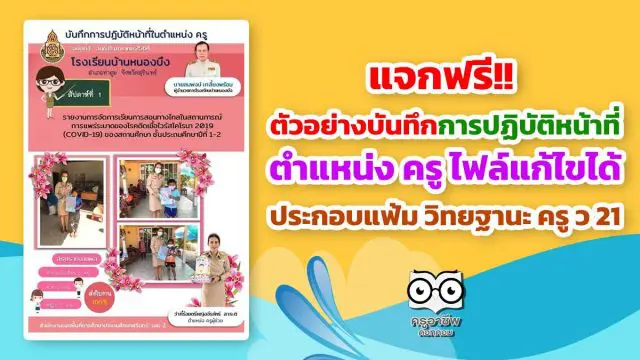 แจกฟรี!! บันทึกการปฏิบัติหน้าที่ในตำแหน่ง ครู ไฟล์แก้ไขได้ ประกอบแฟ้มทำ วิทยฐานะ ครู ว 21