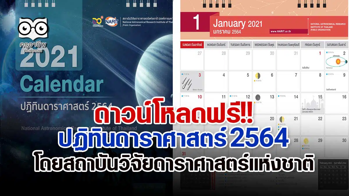 สำหรับคุณครูวิทยาศาสตร์ หรือผู้สนใจ บทความนี้ครูอาชีพดอทคอม ขอแนะนำแหล่งดาวน์โหลดไฟล์ ปฏิทิน ดาราศาสตร์ 2564 ซึ่งจะบอกปรากฎการณ์สำคัญ ๆ ทางดาราศาสตร์อย่างชัดเจน ดา่วน์โหลดไฟล์ได้ในลิงค์ด้านล่างครับ