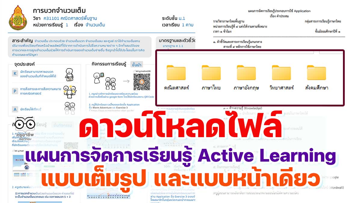 - ดาวน์โหลด แผนการจัดการเรียนรู้แบบ Active Learning ไฟล์เวิร์ด พร้อมสื่อการสอน ชั้น ม.1-6