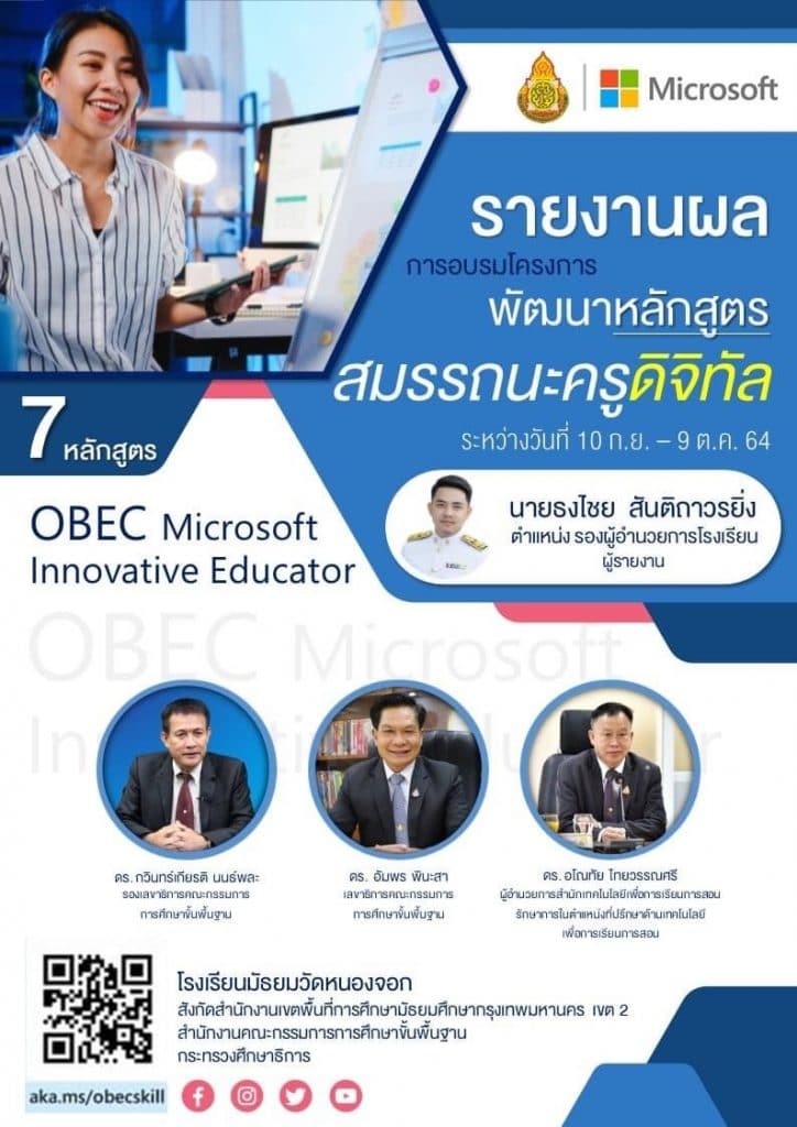 - ตรวจสอบรายชื่อลงทะเบียนอบรมออนไลน์ โครงการพัฒนาหลักสูตรสมรรถนะครูดิจิทัล OBEC Microsoft Innovative Educator รับเกียรติบัตรจาก สพฐ.และไมโครซอฟต์ (อบรม 10 กันยายน – 9 ตุลาคม 2564)