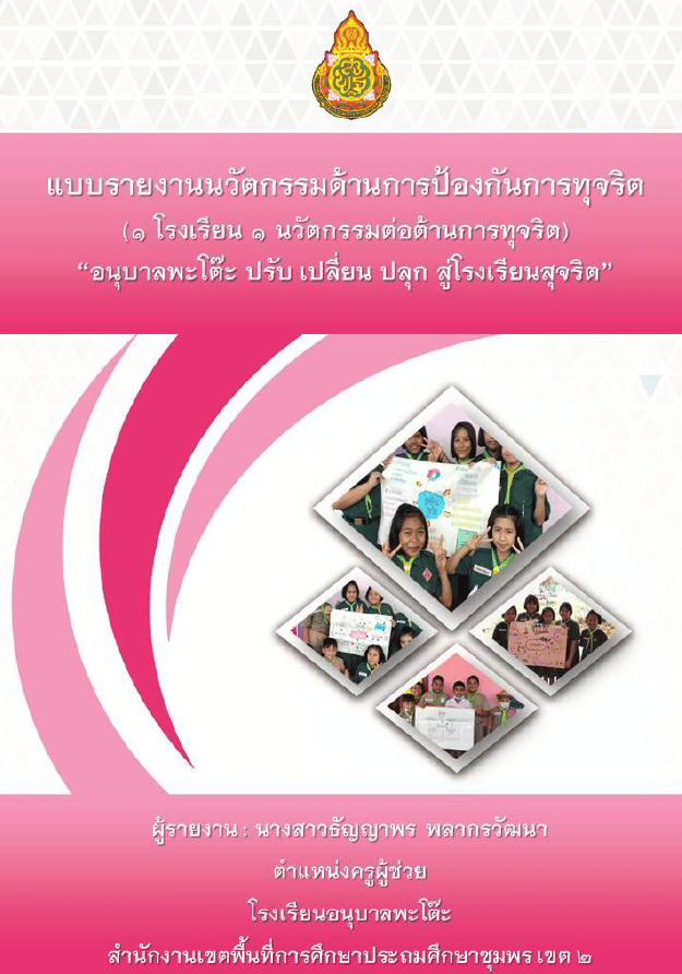 รวมตัวอย่าง รายงานนวัตกรรมการใช้หลักสูตรต้านทุจริตศึกษา Best Practice “การนำหลักสูตรต้านทุจริตศึกษาไปใช้” ระดับการศึกษาขั้นพื้นฐาน โครงการโรงเรียนสุจริต