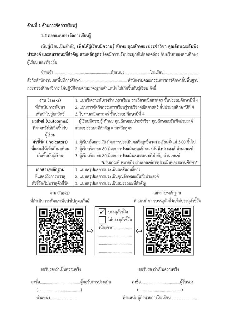 1) การปฏิบัติงานตามมาตรฐานตำแหน่งครู และมีภาระงานตามที่ ก.ค.ศ. กำหนด