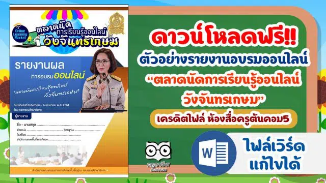 ดาวน์โหลดฟรี!! ไฟล์ตัวอย่างรายงานอบรมออนไลน์ ตลาดนัดการเรียนรู้ออนไลน์วังจันทรเกษม เครดิตไฟล์ ห้องสื่อครูต้นคอม5