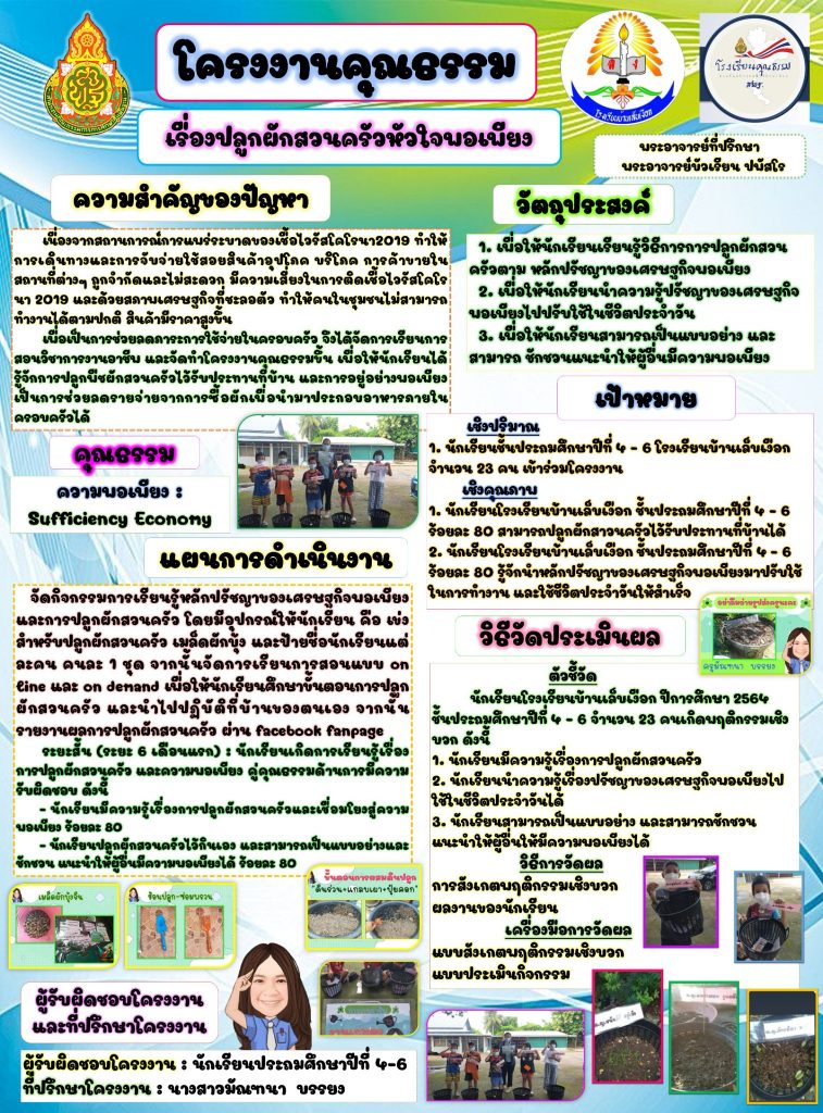 ดาวน์โหลด รายงานโครงงานคุณธรรม doc ปลูกผักสวนครัวด้วยหัวใจพอเพียง ไฟล์เวิร์ดโครงงาน และ พาวเวอร์พ้อยท์โปสเตอร์ แก้ไขได้ แจกฟรี โดยโรงเรียนบ้านเล็บเงือก