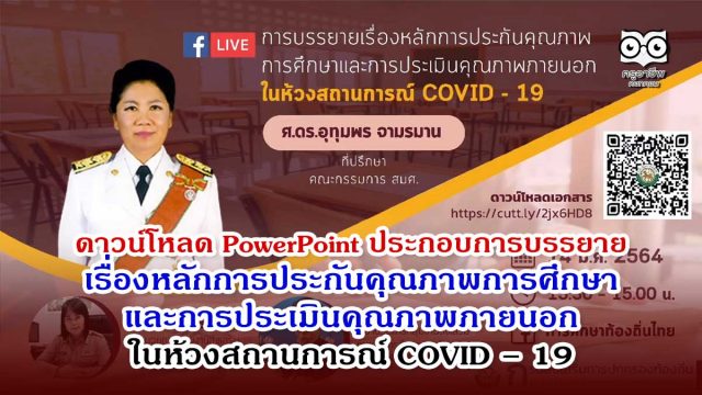 ดาวน์โหลด PowerPoint ประกอบการบรรยาย เรื่องหลักการประกันคุณภาพการศึกษาและการประเมินคุณภาพภายนอกในห้วงสถานการณ์ COVID – 19