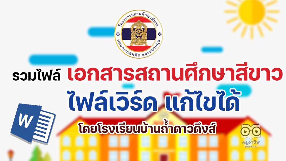 รวมไฟล์เอกสาร โครงการสถานศึกษาสีขาว เอกสารสถานศึกษาสีขาว ไฟล์เวิร์ด แก้ไขได้ โดยโรงเรียนบ้านถ้ำดาวดึงส์ สพป.กาญจบุรี เขต 3