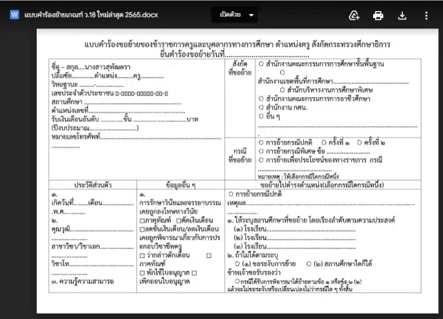 - ดาวน์โหลดไฟล์ เอกสารประกอบคำร้องขอย้าย ตำแหน่งครู ไฟล์เวิร์ด แก้ไขได้