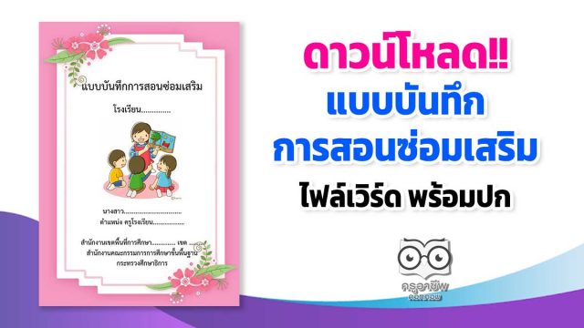 ดาวน์โหลด!! แบบบันทึกการสอนซ่อมเสริม ไฟล์เวิร์ด พร้อมปก