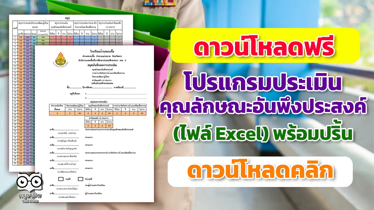 แบบ ประเมินคุณลักษณะอันพึงประสงค์ แบบ Excel