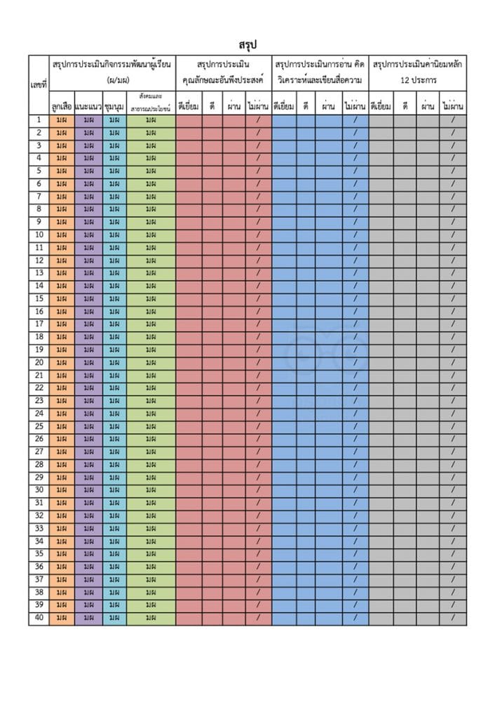 หมายเหตุ นักเรียนต้องได้รับการประเมินคุณลักษณะอันพึงประสงค์ ในระดับ 1 ขึ้นไปทุกข้อจึงจะอนุมัติให้ผ่านเกณฑ์การประเมินคุณลักษณะอันพึงประสงค์