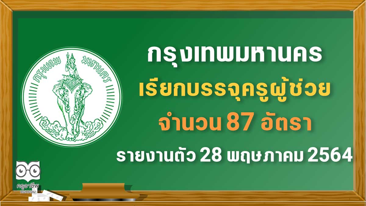 กทม.เรียกบรรจุครูผู้ช่วย จำนวน 87 อัตรา รายงานตัว 28 พฤษภาคม 2564