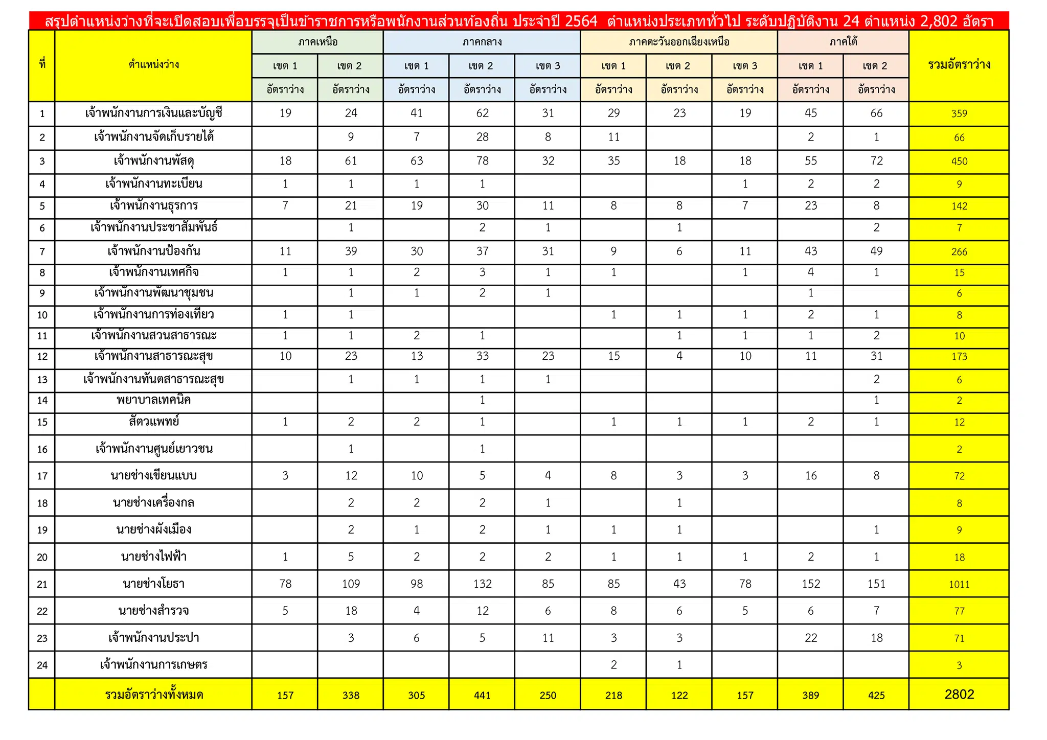 ประเภททั่วไป ระดับปฏิบัติงาน จำนวน 24 ตำแหน่ง 2,802 อัตรา