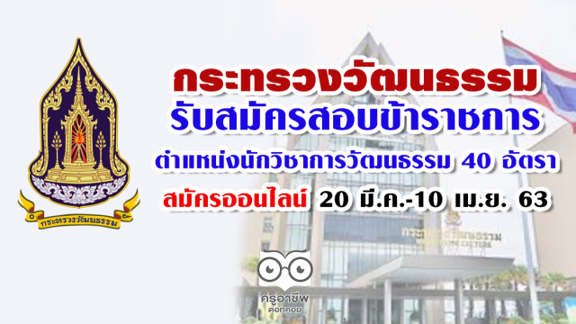 กระทรวงวัฒนธรรม รับสมัครสอบข้าราชการ ตำแหน่งนักวิชาการวัฒนธรรม 40 อัตรา สมัครออนไลน์ 20 มี.ค.-10 เม.ย. 63