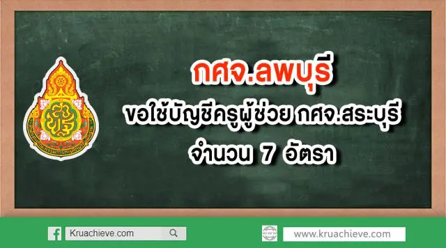 กศจ.ลพบุรี ขอใช้บัญชีครูผู้ช่วย กศจ.สระบุรี จำนวน 7 อัตรา กศจ ลพบุรี ขอรายชื่อผู้สอบแข่งขันได้ ตำแหน่งครูผู้ช่วย บัญชี กศจ.สระบุรี ไปขึ้นบัญชี กศจ ลพบุรี จำนวน 7 ราย ซึ่งสำนักงานศึกษาธิการจังหวัดสระบุรี ได้จัดส่งแบบสมัครใจฯ และเอกสารการสมัครสอบ ถึง กศจ ลพบุรี.
