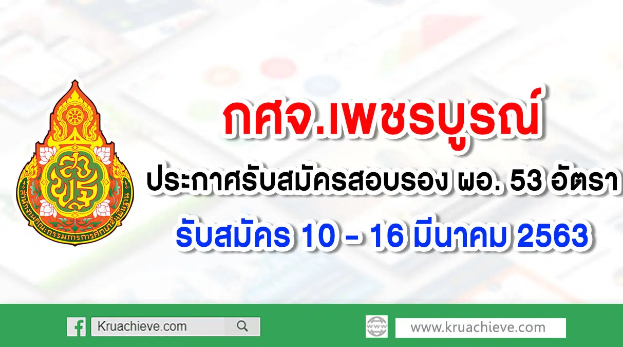 กศจ.เพชรบูรณ์ ประกาศรับสมัครสอบรอง ผอ. 53 อัตรา รับสมัคร 10 – 16 มีนาคม 2563