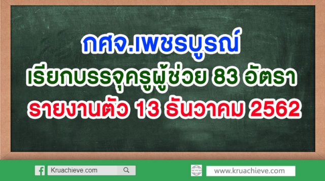 กศจ.เพชรบูรณ์ เรียกบรรจุครูผู้ช่วย 83 อัตรา รายงานตัว 13 ธันวาคม 2562 คณะกรรมการศึกษาธิการจังหวัดเพชรบูรณ์ประกาศตำแหน่งว่างสำหรับใช้บรรจุและแต่งตั้งผู้สอบแข่งขันได้ ตำแหน่งครูผู้ช่วย และเรียกรายงานตัว วันที่ 13 ธันวาคม 2562 ดังนี้