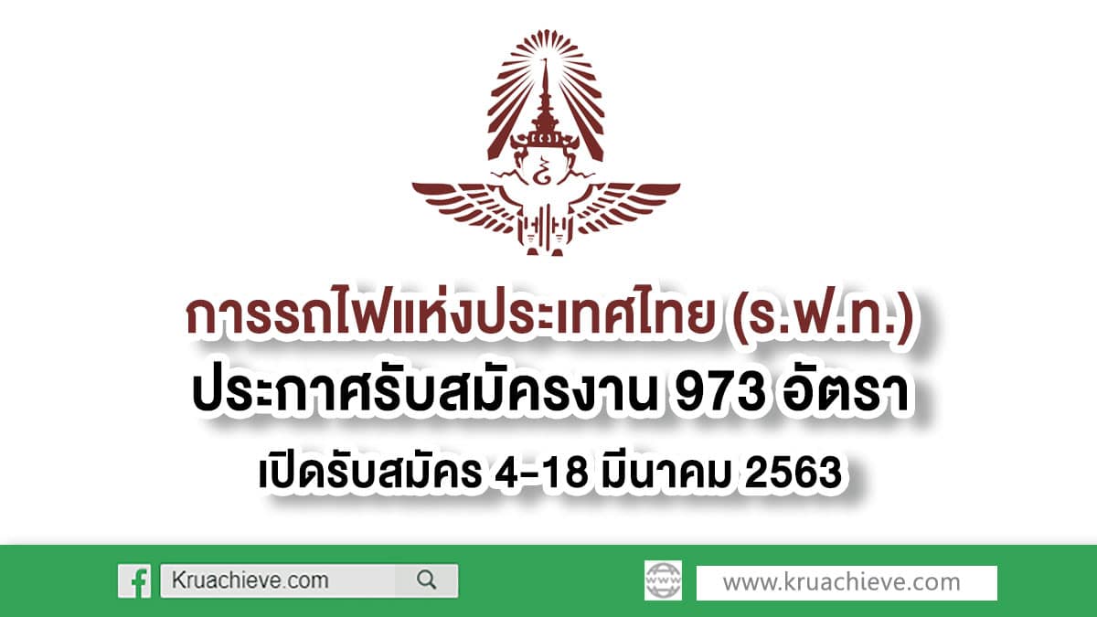 การรถไฟแห่งประเทศไทย (ร.ฟ.ท.) ประกาศรับสมัครงาน 973 อัตรา เปิดรับสมัคร 4-18 มีนาคม 2563 การรถไฟแห่งประเทศไทย ประกาศรับสมัครสอบคัดเลือกลูกจ้างเฉพาะงานของการรถไฟแห่งประเทศไทย ที่ได้รับการจ้างต่อเนื่องไม่น้อยกว่า 1 ปี เพื่อเข้าทำงานในการรถไฟแห่งประเทศไทย