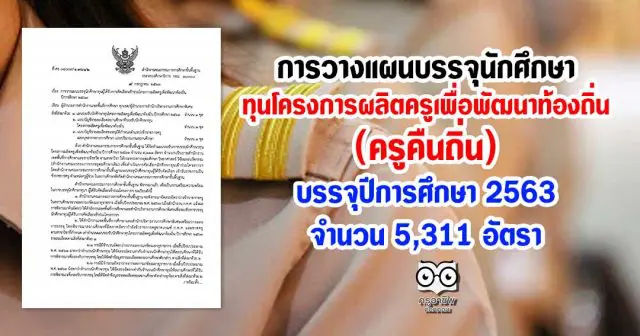 การวางแผนบรรจุนักศึกษาทุนโครงการผลิตครูเพื่อพัฒนาท้องถิ่น บรรจุปีการศึกษา 2563 จำนวน 5,311 อัตรา